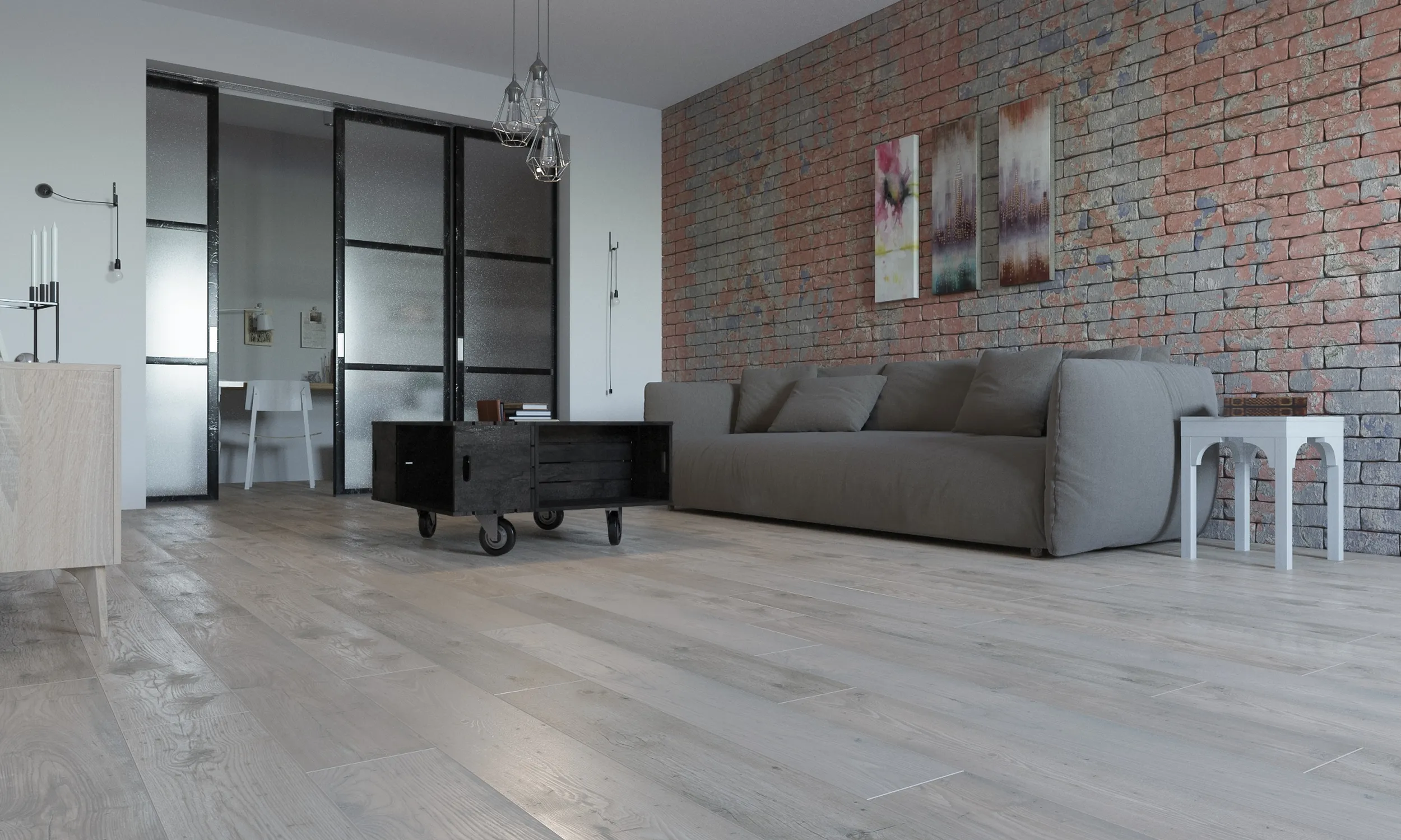 Серо-бежевый декор, в котором выполнен влагостойкий ламинат My Step Sky Дуб Серо-Бежевый, - это лучший выбор, если вы ищете универсальное напольное покрытие, за которым легко ухаживать.